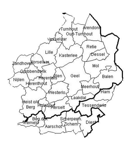 We werken vooral in de regio Zuiderkempen zoals weergeven op de kaart hiernaast.